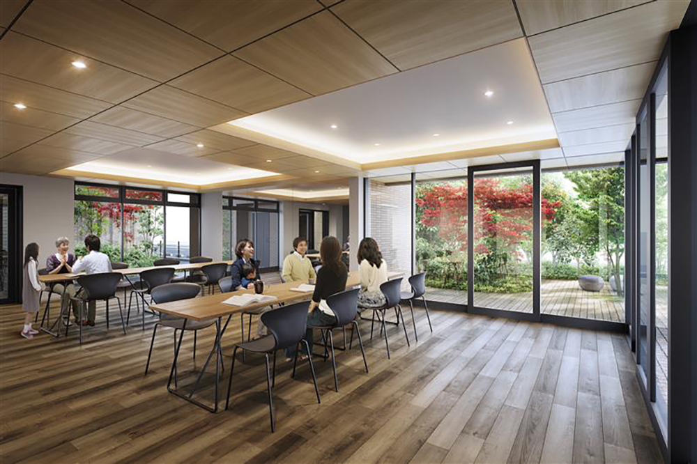 - ポレスター岡山運動公園では、マンション内にコミュニティルームを設置し、マンション居住者や地域コミュニティを担う方々が日常の中で気軽に集える場を提供しています。ここでは、居住者や地域の方々が自然に顔を合わせ、互いに支えあい、頼りあえる関係性を築くことができるよう工夫されています。暮らしの中で地域の皆さんの顔を知り、心と心でつながることで、安心感のある住環境、地域環境を実現しています。